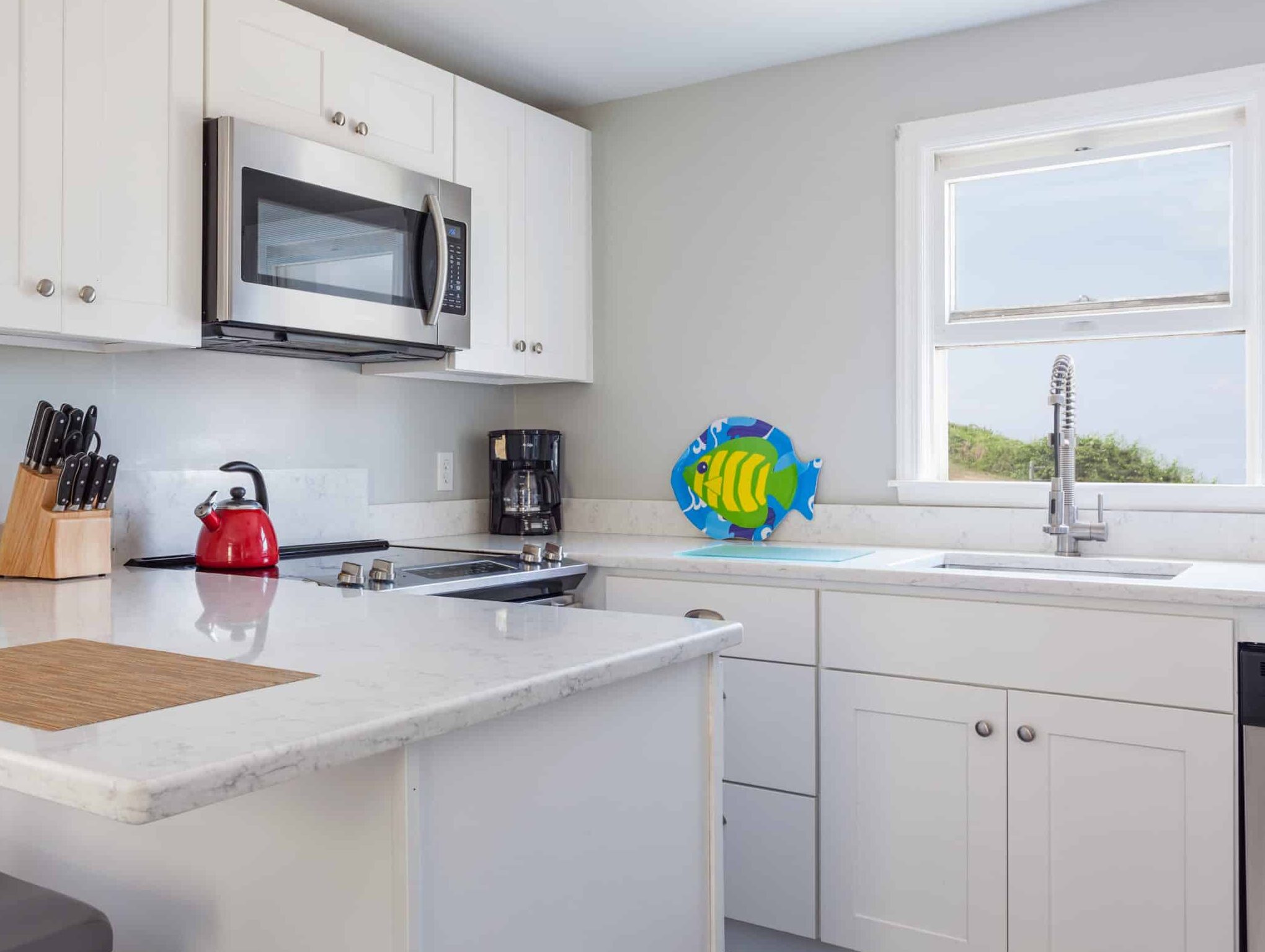 A well-stocked kitchen is essential for those who love to cook while on vacation. Our rentals feature modern appliances, cookware, and all the essentials needed to prepare a delicious meal. Whether you’re enjoying a quiet breakfast before a beach day or cooking a family dinner, you’ll have everything you need at your fingertips. Harbor Point Haven, Waverly Suite 1 and Waverly Suite 2 do not have full kitchens, but they are still well equipped to prepare your morning coffee and breakfast, beach snacks, or evening wine and charcuterie. Full kitchen or not, you will always have a coffee maker, microwave, fridge, dinnerware, silverware, and glassware, especially wine glasses.